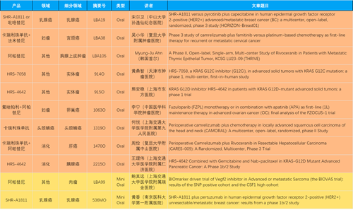本届大会,作为中国医药创新代表性企业的asiagame医药共有46项抗肿瘤领域研究成果入围,包括4项最新突破性摘要(LBA)1,共涉及14项创新药。其中9项入选口头(Oral)报告,2项入选简短口头报告(Mini Oral),32项研究接收为壁报(Poster),3项研究接收为电子壁报(E-Poster),覆盖食管胃癌、妇科肿瘤、肝癌、乳腺癌、胰腺癌、肺癌、肉瘤、胆道癌、头颈鳞癌、前列腺癌、甲状腺癌等十余个领域。14款创新药包括10款已上市产品:注射用瑞康曲妥珠单抗(艾维达®,研发代号:SHR-A1811)、注射用卡瑞利珠单抗(艾瑞卡®)、苹果酸法米替尼胶囊(艾比特®)、甲磺酸阿帕替尼片(艾坦®)、马来酸吡咯替尼片(艾瑞妮®)、阿得贝利单抗注射液(艾瑞利®)、羟乙磺酸达尔西利片(艾瑞康®)、氟唑帕利胶囊(艾瑞颐®)、瑞维鲁胺片(艾瑞恩®)、海曲泊帕乙醇胺片(恒曲®),以及4款未上市产品,包括KRASG12C抑制剂HRS-7058、KRASG12D抑制剂HRS-4642、抗PD-L1/TGF-βRII双抗瑞拉芙普-α注射液(SHR-1701)、Trop-2 ADC SHR-A1921。2类新药盐酸伊立替康脂质体注射液(II)(越优力®)及国内首仿药昂丹司琼口溶膜(艾其速®)各有1项研究入选。